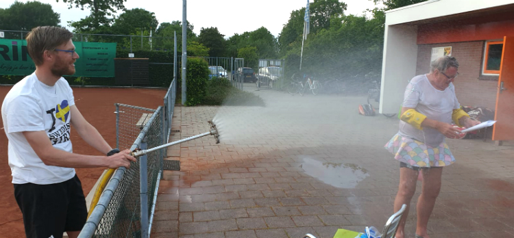 Het liep uitstekend met dit team. Alles nog gewonnen en de laatste wedstrijd moest gespeeld tegen de onderste Watec. Kat in bakje zou je zeggen. Doch bij Watec deed een zekere Jan Dammer mee, die onze VCL wel kende van het Winsum Open. Jan in een gemengd team? Speelt toch altijd Heren Dubbel op maandag ?En Jan, die bijna elke bal terug heeft? Even checken en inderdaad, hij had niet mogen spelen.( geen dispensatie en verschil meer dan 2.0). Na overleg trok Jan zich terug en wonnen we de wedstrijd en werden we kampioen.